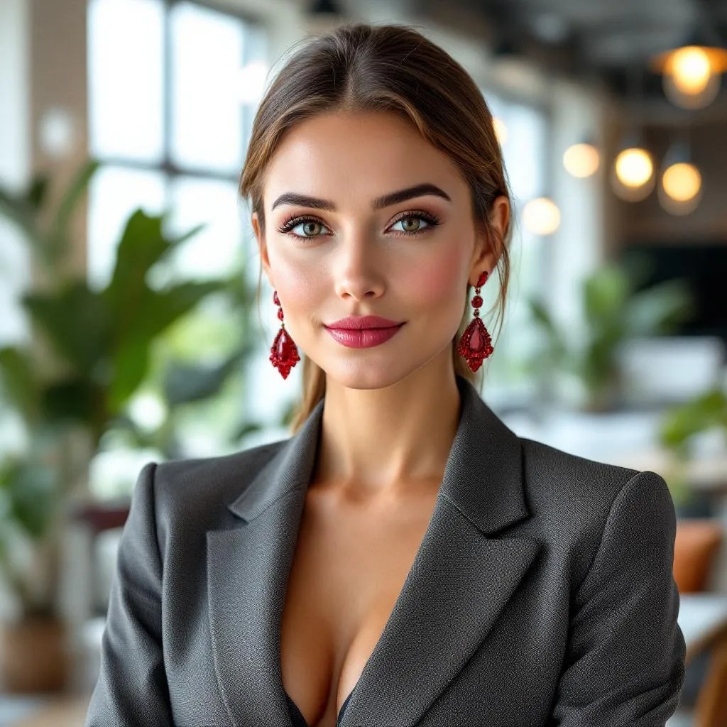 Why: The vivid red gemstone shines when paired with dark or solid-toned outfits, especially in elegant settings.