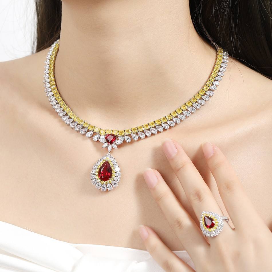 • Layer ruby necklaces with fine chains for a modern touch.